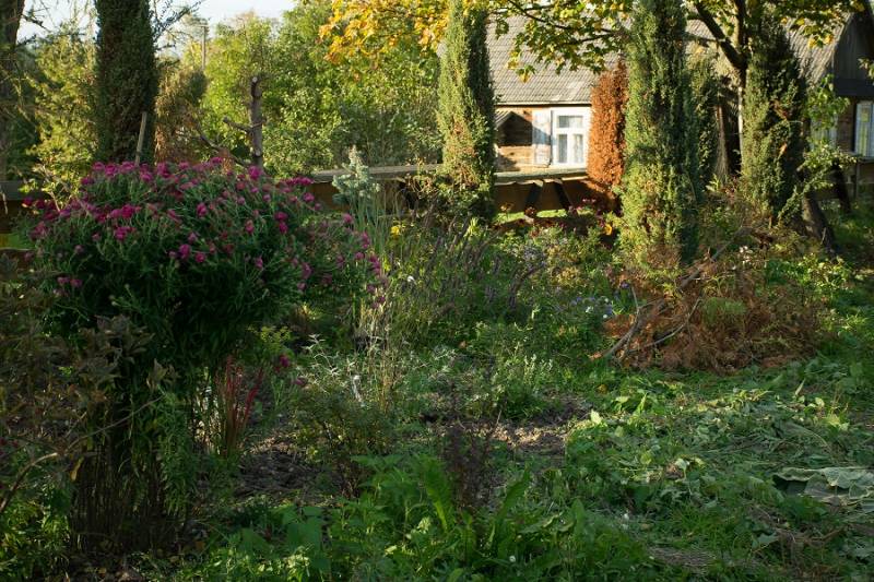 W Biskupinie resztki porządku po wrześniowej wizycie TV. W. ogarnął wowczas narzędzia, ale moich niewymownych i biusthalterów suszących się na trasie już nie...