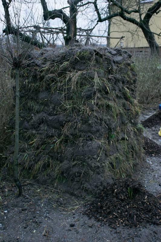Darń została spryzmowana w takich oto stosach, które uprasza się o skompostowanie się. Potem rozplantuje sie ziemię na okolicznych terytoiach