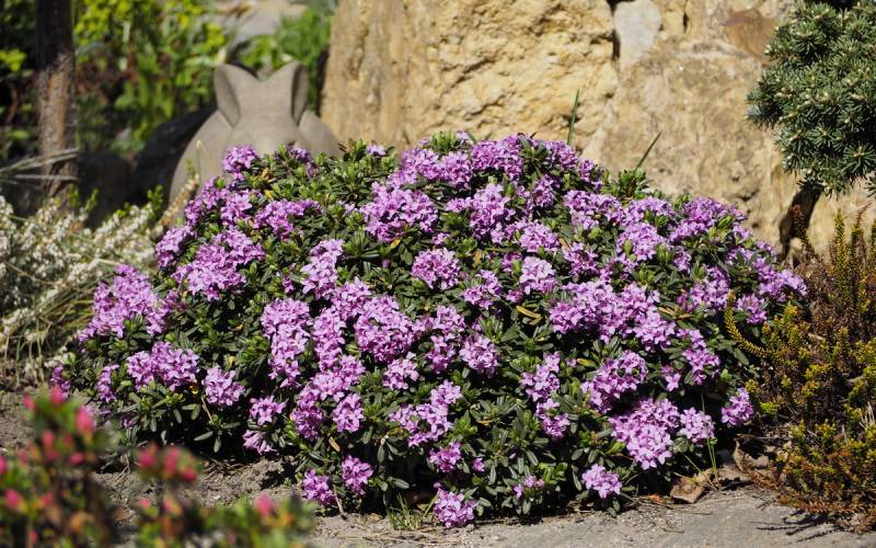 Daphne collina) Ma wygląd i pokrój miniaturowego rododendrona ale jest bardzo odporny na suszę i słabe warunki glebowe.