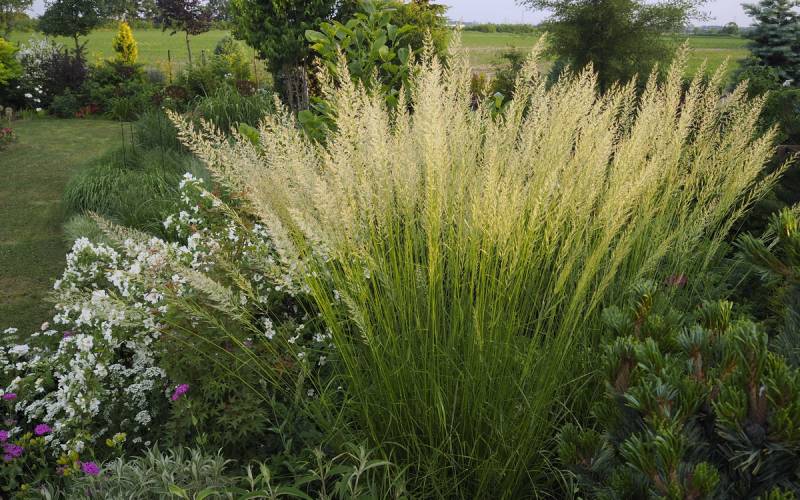 Ta trawa to trzcinnik Waldenbuch jedna z najwcześniej rozpoczynających i zakwitających traw w ogrodzie.