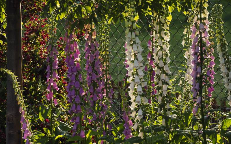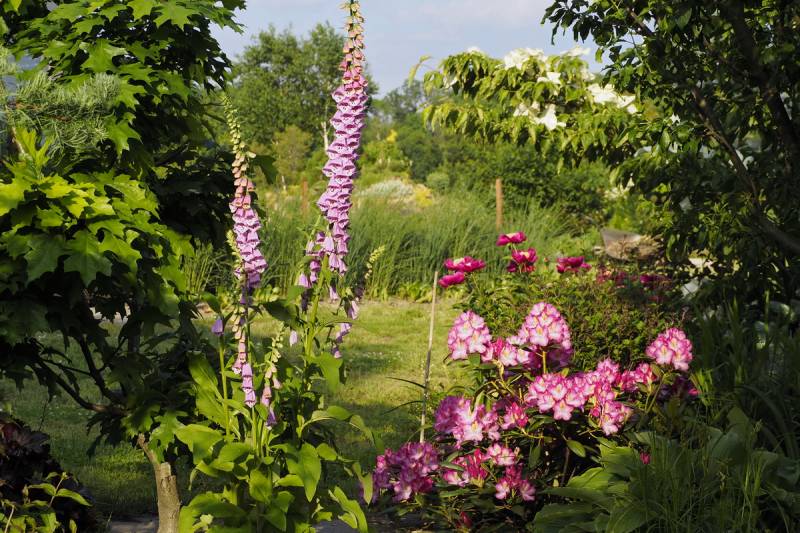 Miłko naparstnice to siewki. Zostawiam je pod drzewami i co roku się wysiewają. Tworzą miks kolorów, a że są dość duże to tłumią chwasty.
