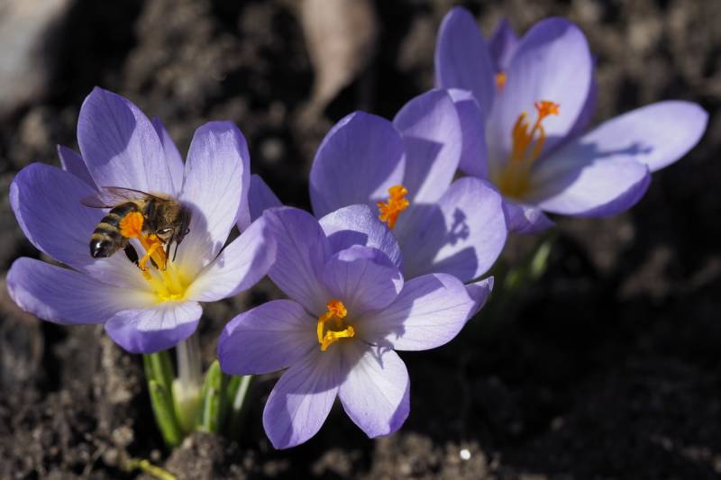 A krokusy rozweselając różne miejsca w ogrodzie