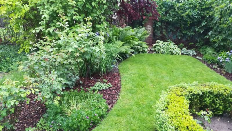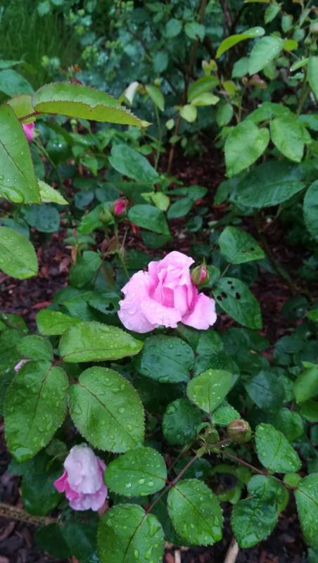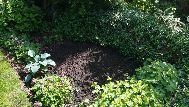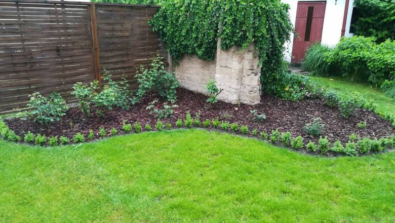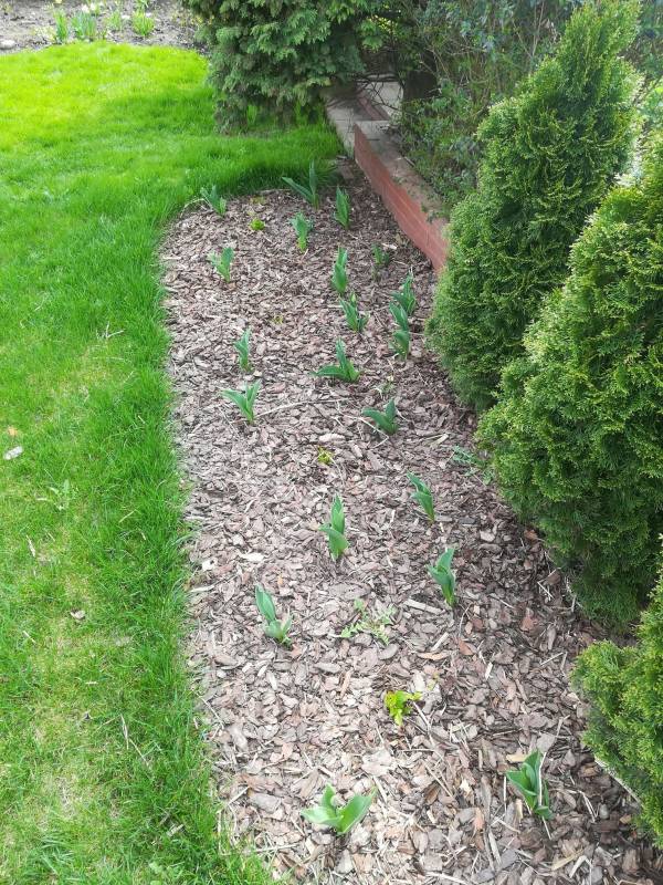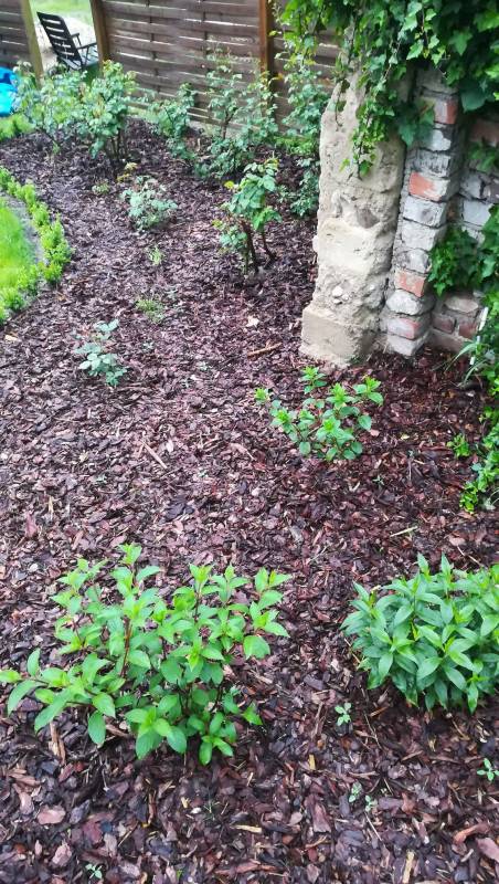Wczoraj zdecydowałem się na wyściółkowanie nowej rabaty różanej korą. Wiem, że to dyskusyjne. Niestety obecnie rabata jest zbyt odsłonięta- nie ma jeszcze bylin uzupełniających. Pielenie jest koszmarem. Tak samo będzie z podlewaniem.