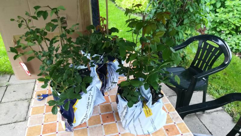 No i dzisiejsza dostawa z Floribundy. Udało mi się dostać to co chciałem - 'Olivia Rose', 'Boscobel' i ' Teasing Georgia' od mojego ulubionego Austina Piękne sadzonki- brawa dla firmy!