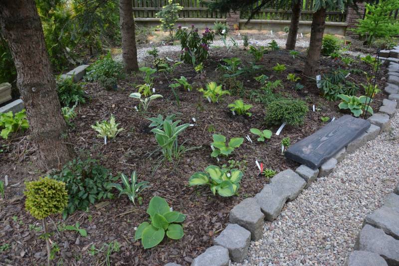 Tym sposobem, mam wszystko, lub prawie wszystko, a to kwitnące, bujnie i kolorowo lilie, liliowce, kolorowe liście żurawek, hosty co sezon w innym typie, trochę mchu i paproci