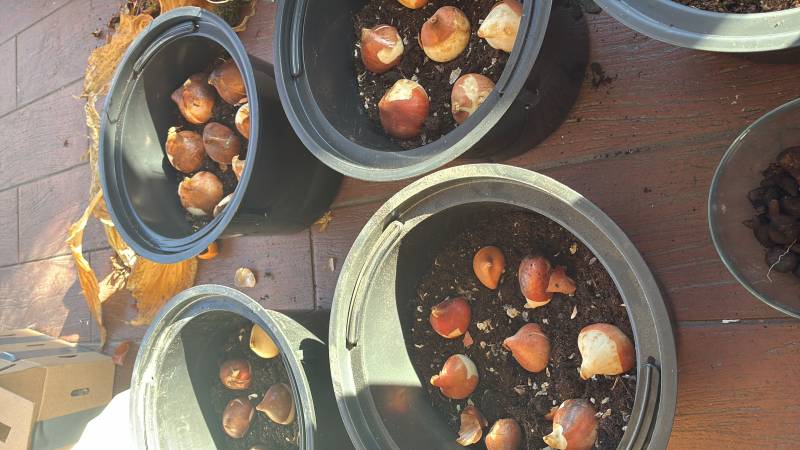 Zanim nam ziemia zamarzła sądziłam, teraz mam przestój, zimno, jak diabli! Tu miejsca użyczył warzywniak, to do bukietów tulipany będą rosły.