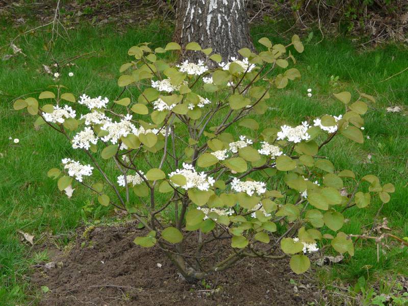 Kwitnie też wczesna u mnie kalina furcatum, bardzo powoli przyrasta w górę, lubię jej koronkowe kwiaty.