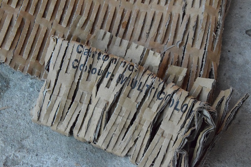 Zwinęłam w rulon tekturę falistą miałam miałam w domu (tego dnia przyszła przesyłka, w której zamówione rzeczy zabezpieczone były na czas transportu takim materiałem