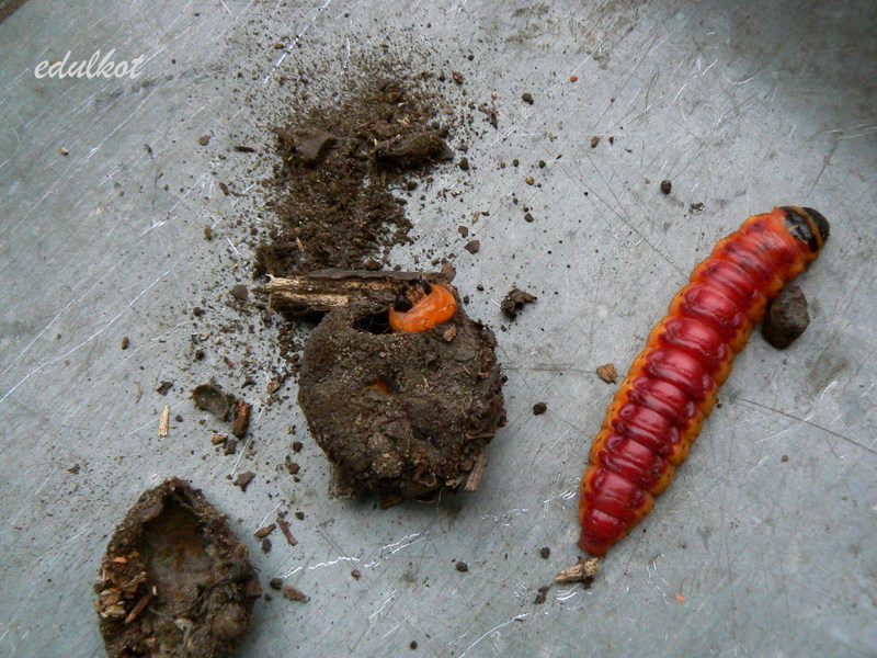 pierwszy raz w październiku 2012 przy kopaniu znalazłam kokony - dość elastyczne ale mocne poduszeczki z gąsienicami w środku