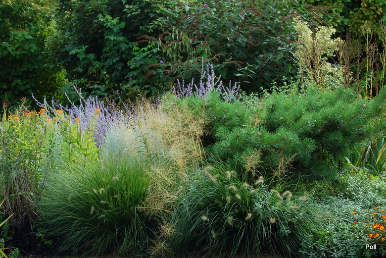 Oprócz roślin, które stale rosną w tej części, sezonowo umieszczane są chyba także inne, o mniejszej mrozoodporności, ale świetnie się z resztą komponujące