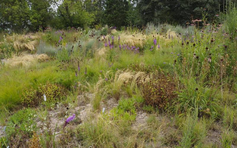 Nie ma więc typowego układu rabat, czy też kolekcji różnych odmian danego gatunku. Tabliczki z nazwami roślin trzeba odszukiwać, a ekosystemy roślinne zaczynają żyć własnym rytmem.