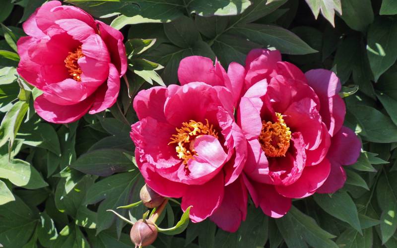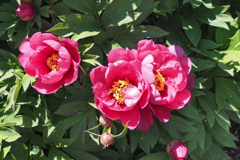 Hodowca: odmiana z 1995, ale trudno znaleźć jakiekolwiek informacje o jej hodowcy Kwiaty: podwójne (Ø 15cm), intensywnie malinowo-różowe z żółtymi pylnikami Wysokość: około 70-80 cm Pędy: mocne, sztywne Liście: ciemnozielone, mocno wcięte, dekoracyjne do późnej jesieni Termin kwitnienia: przełom maja i czerwca