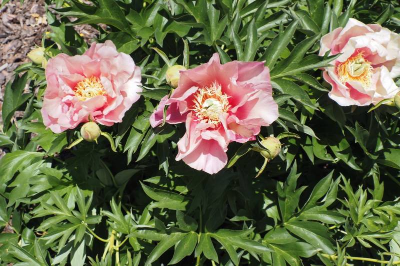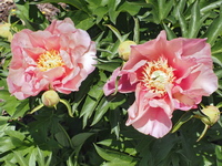 Hodowca: Thierry Rat, Francja (2007), w sprzedaży po 2012 Kwiaty: pojedyncze lub półpełne, duże (Ø 15-18cm) delikatnie malinowe z nutą czerwieni u nasady płatków, które otaczają lśniące, złote pręciki Wysokość: około 70 cm Pędy: mocne łodygi utrzymują kwiaty w pozycji pionowej nawet w deszczu, odmiana niezwykle obficie kwitnąca Liście: bardzo zdrowe, dzięki czemu roślina pozostaje atrakcyjna aż do późnej jesieni, nawet po kwitnieniu Termin kwitnienia: przełom maja i czerwca