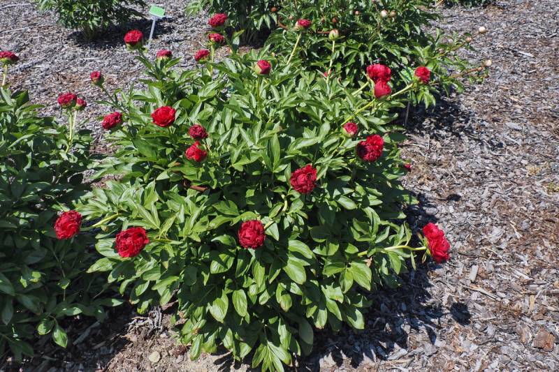 Hodowca: Henry Bockstoce (USA 1955) Kwiaty: pełne, mocno upakowane, jaskrawoczerwone o średnicy do 16 cm, płatki ułożone są w przepiękną rozetę tworząc niemal idealny kształt kwiatu, lekko pachnące Wysokość: do 85 cm Liście: złożone, skórzaste, ciemnozielone Pęd: w miarę sztywny, jednak pod ciężarem kwiatów może się pokładać Termin kwitnienia: początek czerwca Rodzice: krzyżówka P. officinalis z P. lactiflora