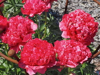 Hodowca: Don Hollingsworth (USA 1996) Kwiaty: ogromne, pełne, typu bomb (Ø: 20 cm) w atrakcyjnym odcieniu czerwieni, z czasem kolor zmienia się z czerwonego na ciemnopomarańczowy, a następnie na łososiowy, pięknie pachną Wysokość: do 85 cm Liście: złożone, skórzaste, ciemnozielone Pęd: łodygi są bardzo mocne, pąki boczne występują bardzo rzadko lub wcale Termin kwitnienia: koniec maja Rodzice: krzyżówka P. officinalis z P. lactiflora