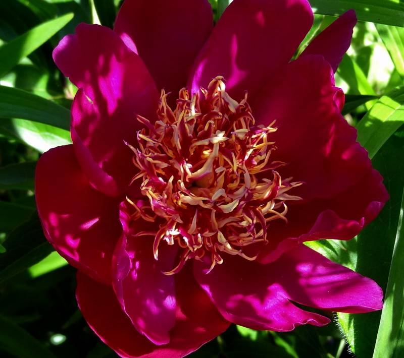 Odmiana o bardzo ciemnych, pojedynczych kwiatach. Złote pręciki dodaja jej niemałego uroku. Z czasem ciemnieją.