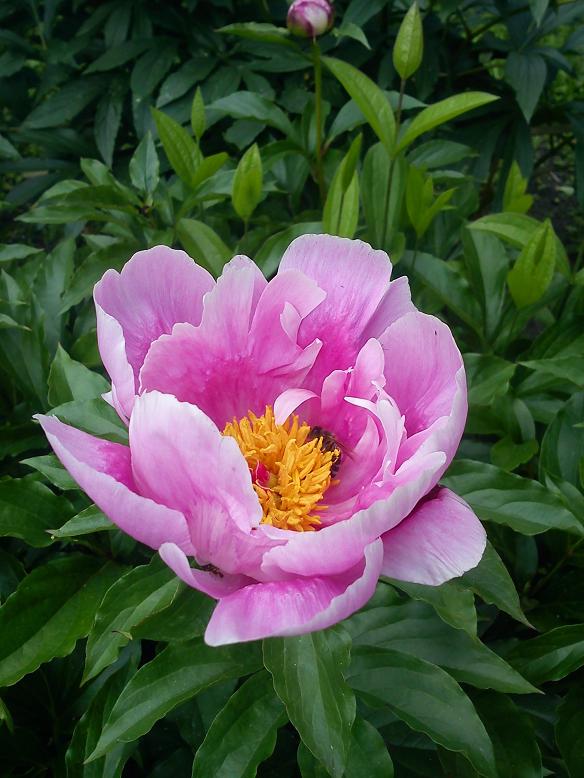 Przywitam się śliczną nieznajomą piwonią, którą wprost uwielbiają owady