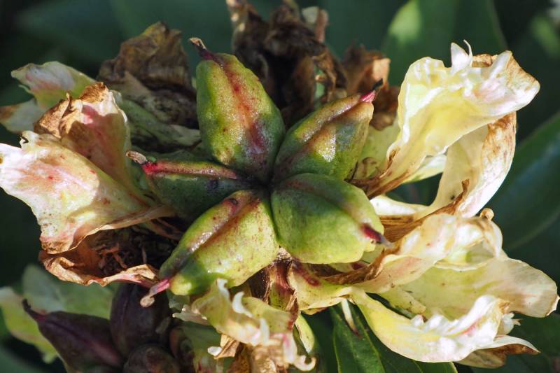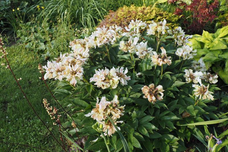 Piwonia 'Green Lotus' w tym sezonie nie tylko zakwitła obficie ... ale zauważyłem że jej kwiaty utrzymują się na krzewie prawie przez cztery tygodnie.