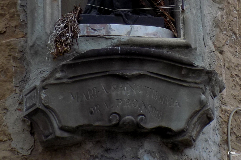 Napis mówi: 'Przenajświętsza Mario, módl się za nami"
