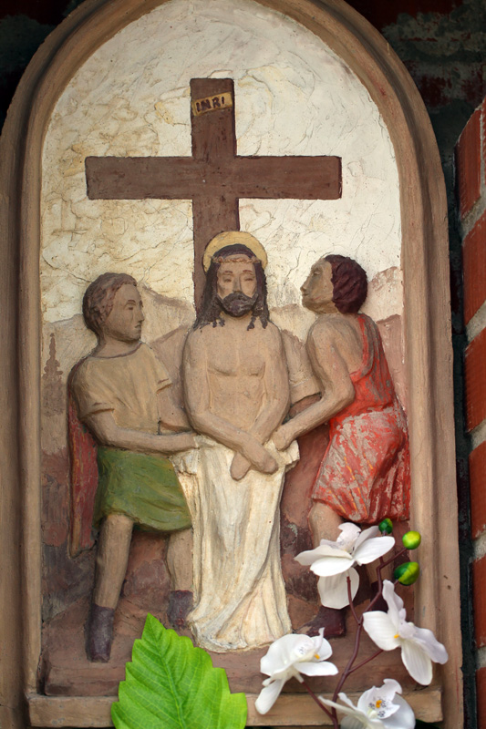 Pisząc o kapliczkach w lasach pomiędzy Budami Łańcuckimi a Żołynią wspomniałem o pewnej tajemniczej sprawie. Otóż, mniej więcej w połowie drogi pomiędzy kaplicą Św. Antoniego, a kaplicą Św. Huberta odchodzi droga leśna w kierunku Korniaktowa Płn. Przy tej drodze, na leśnym dukcie wiodącym na niewielkie wzgórze ktoś nieznany, wiosną 1992 r. umieścił kapliczki Drogi Krzyżowej. Są to kapliczki nadrzewne, rodzaj dużych pasyjek.
