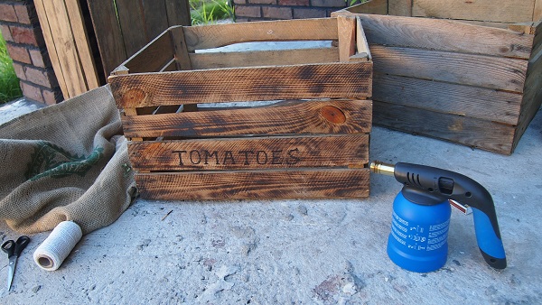 Skrzynki są wyłożone agrotakniną. Z worków jutowych wyciełąm tylko paski i obiłam nimi górę, dla efektu estetycznego.