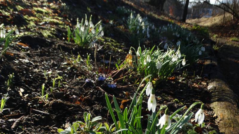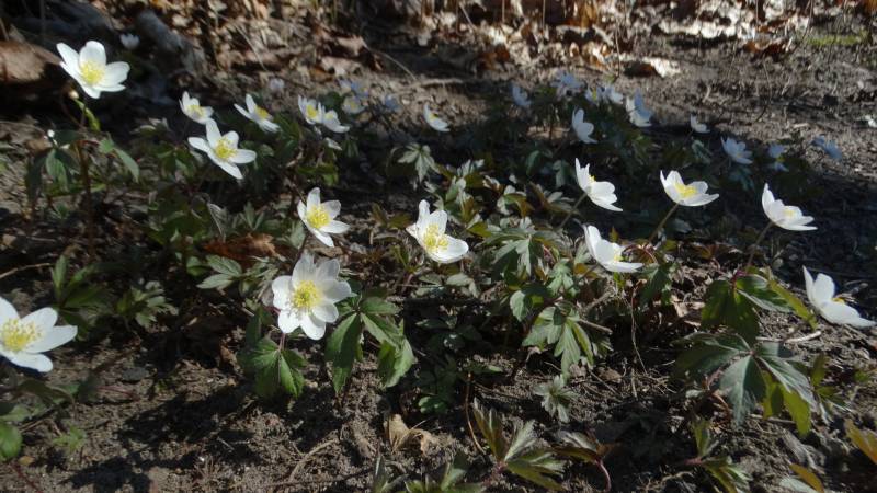 Wiosenna łąka na skarpie żyje dalej własnym życiem. Po przebiśniegach pojawiły się zawilce i wypełniają prawie każde wolne miejsce. Tu i ówdzie wychodzą cebulice i śnieżniki.