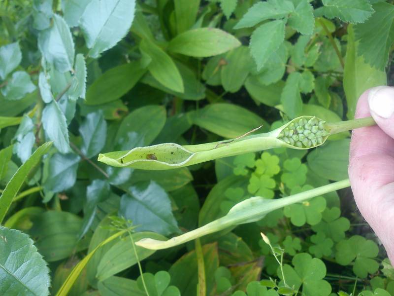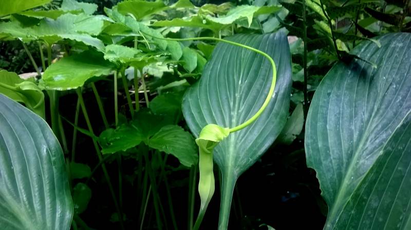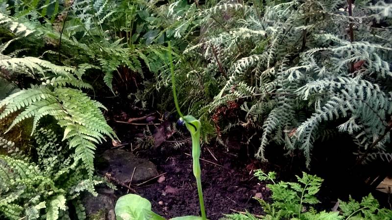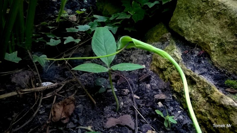 Ciekawe i oryginalne jest zakończenie kolby. To bardzo długi,gładki wyrostek,wystający z pochwy daleko poza roślinę. Dojrzałe rośliny w dobrych warunkach mogą osiągnąć nawet