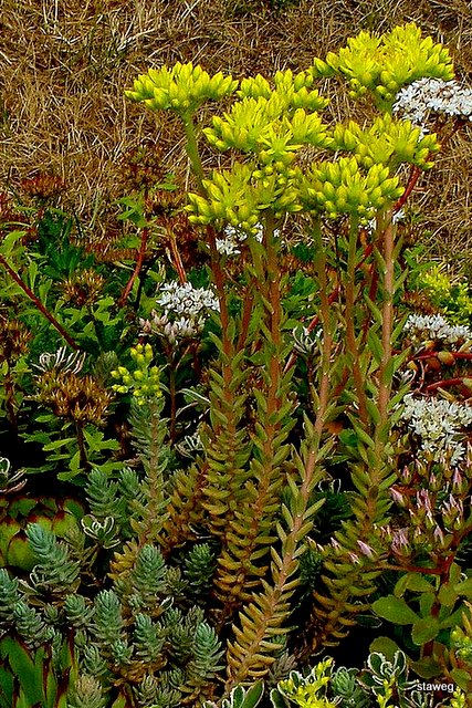Sama roślina, pokładająca się, raczej niska, około 10 - 15 cm. Kwitnie w okresie VI - VII. Kolorem liści i kwiatów ożywia monotonię kamieni, ładnie komponuje się z innymi roślinami skalnymi. Dziko występuje w Europie Północnej. W Polsce na nielicznych stanowiskach (np. okolice Lubiąża), częściej zdziczały, przeniesiony z ogrodów.