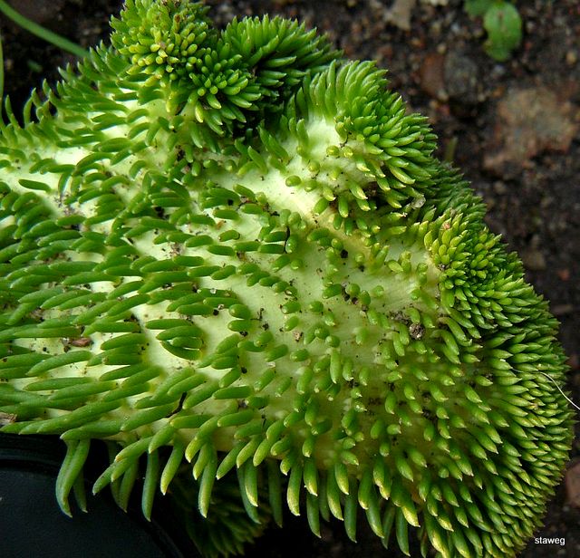 Gruboszowatych (Crassulaceae) o mięsistych, błękitno-zielonych liściach.