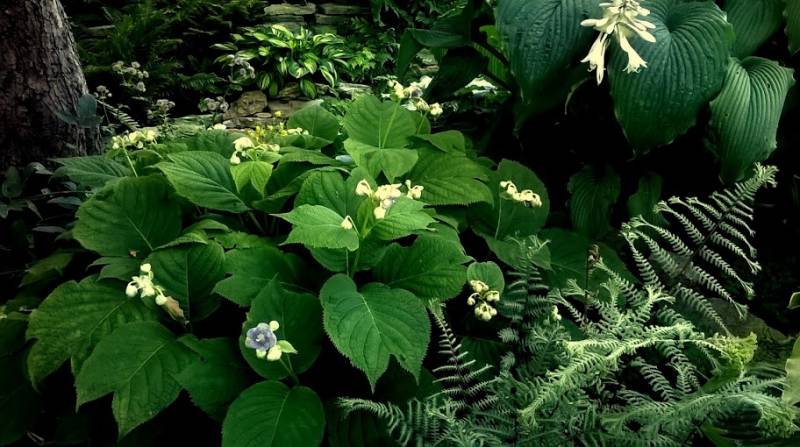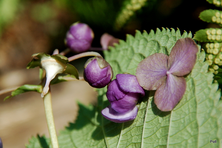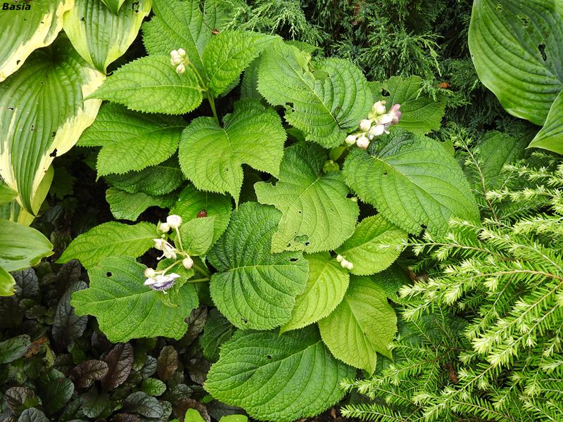 Bylina wysokości 40-50 cm o niezwykle ciekawym wyglądzie. Kwitnie w czerwcu/lipcu niewielkimi fioletowo-niebieskimi kwiatami. Niewymagająca, całkowicie mrozoodporna. U mnie rośnie w cieniu, ale w godzinach dopołudniowych ma nieco słońca. Posadziłam w ziemię kompostową trzy lata temu i od tej pory nie nawożę. Towarzyszą jej rododendrony więc może mieć nieco kwaśne podłoże.
