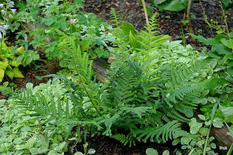 Szerszy widok na hosty i dąbrówki na skraju rabat