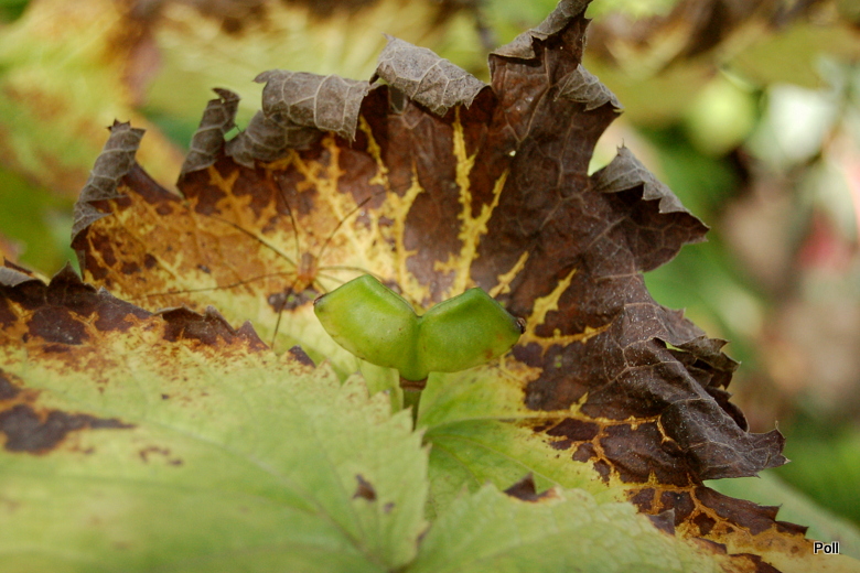 Po przymrozkach -6C, moje glaucidium już poszło spać. Zdążyło jednak otworzyć nasienniki (fot.16.10.2015)