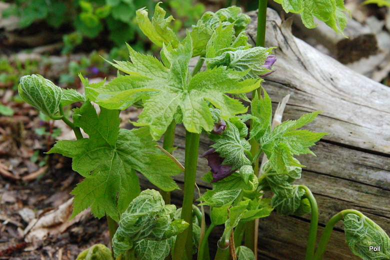 Glucidium palmatum miało kilka pędów po kupnie , ale ile, to już nie pamiętam. Po roku na pewno jest i bardziej rozrośnięte , wyższe i ma wiele więcej kwiatów.