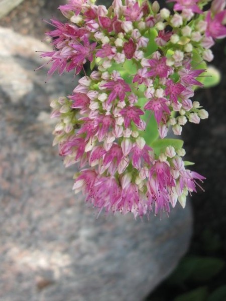 Kwiaty pojawiają się od sierpnia i kwitną do mrozów. Z początku zielone, w miarę rozkwitania przebarwiają się do ciemno-różowych. W bardzo gęstych, spłaszczonych niby baldachach, pokrywają całą roślinę jak parasol.