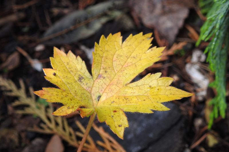 Patrinia triloba dostałam w tym roku od Wojtka Przesadzona do doniczki i na letni czas zadołowana w ogrodzie. Fajnie przyrosła i złapała jesienne kolory.