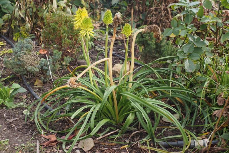 Wrześniowe kwiaty Limelighta padły po pierwszym przymrozku ale trytomka się nie poddaje i wypuściła 4 nowe kwiatostany