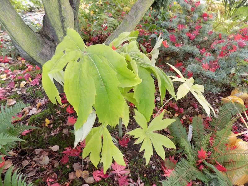 Syneilesis palmata 'Kikko' jeden z dwóch egzemplarzy które mam, zachowuje się dziwnie. W tym roku pierwsze liście były matowe i całkiem zielone, natomiast teraz wypuszcza nowe błyszczące z widocznymi cechami odmiany
