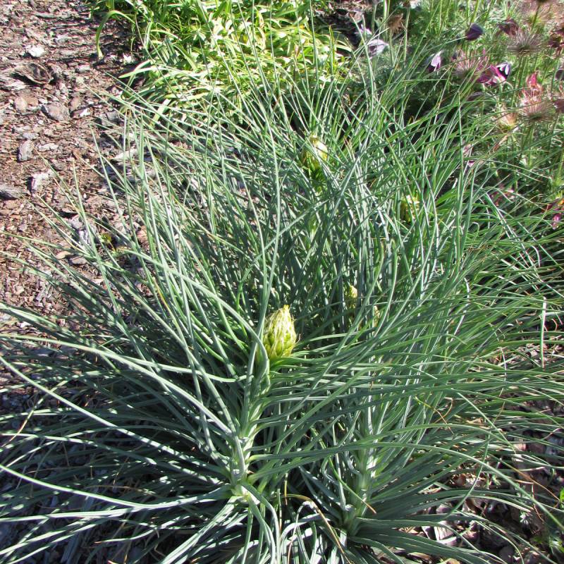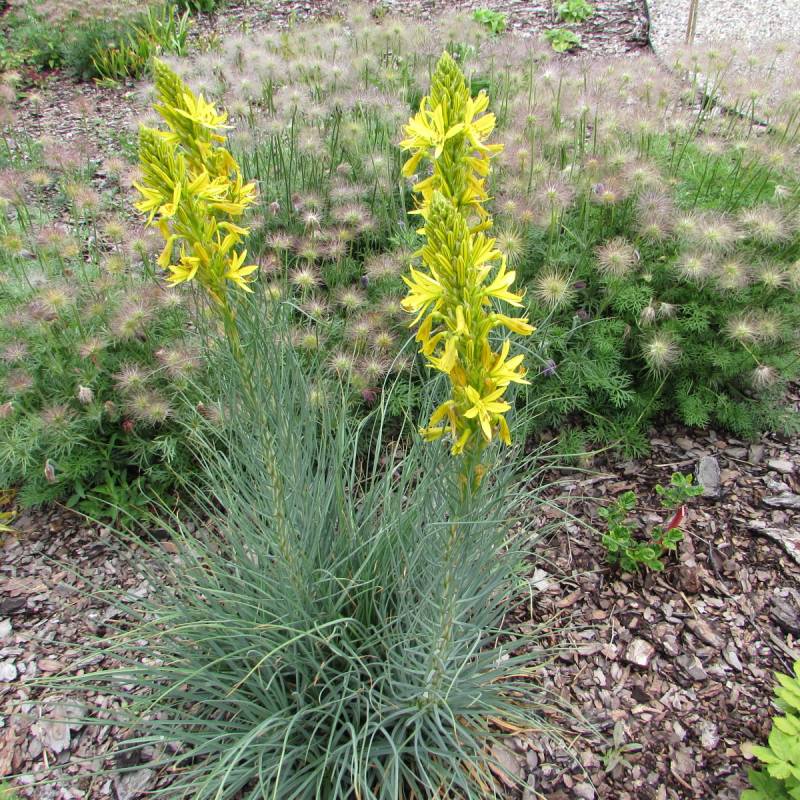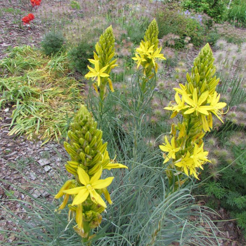 Asphodeline lutea kupiłam wiosną tego roku, jako małą sadzonkę. Posadziłam w dużej donicy i zadołowałam na słonecznej rabacie. Nie zakwitła, ale bogato się rozrosła przez krótkie rozłogi