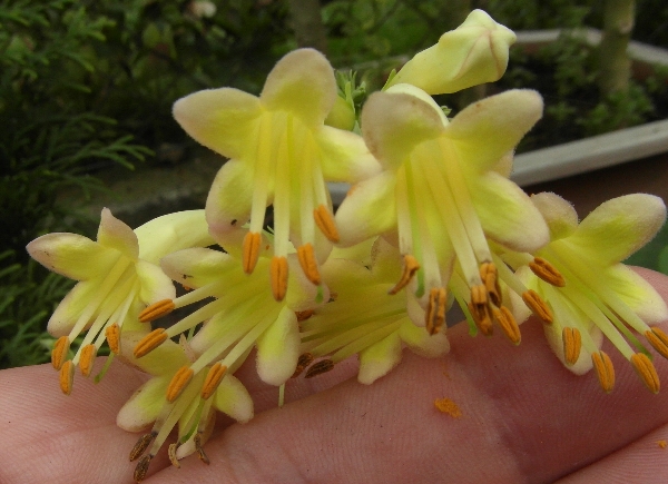 Kwiaty: kremowe, rurkowate, zwieszone, zebrane w szczytowe wiechy