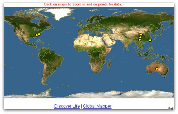 Disporopsis pernyi okazuje się być nieco bardziej kosmopolityczną rośliną.. Jego obecność na stanowiskach naturalnych odnotowano także w Ameryce Północnej i Australii, co widać na zamieszczonej poniżej mapce, zamieszczonej na wiarygodnej stronie Discover Life,skąd zrobiłam zrzut
