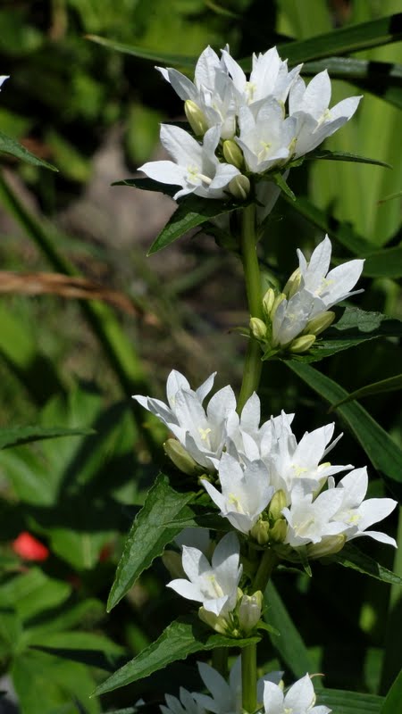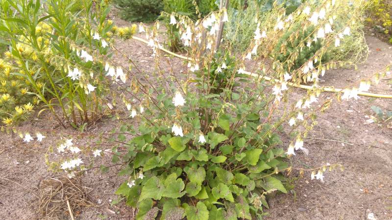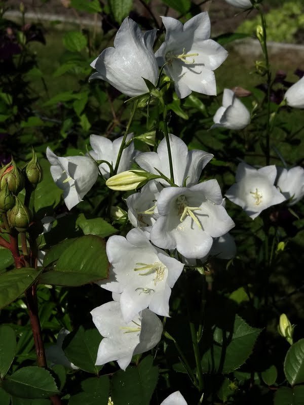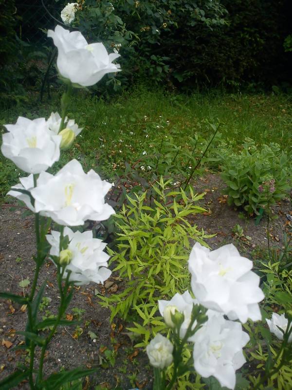 Nie wiem czy wiecie ale dzwonek brzoskwiniolistny, a przynajmniej jego odmiana Alba powtarza kwitnienie. Wystarczy nie wycinać przekwitłych pędów kwiatowych.