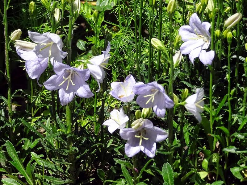Moje dzwonki brzoskwiniolistne, brakuje jeszcze zdjęcia niebieskiego pełnego - zwyczajnie zaspał i jeszcze w pąkach jest.