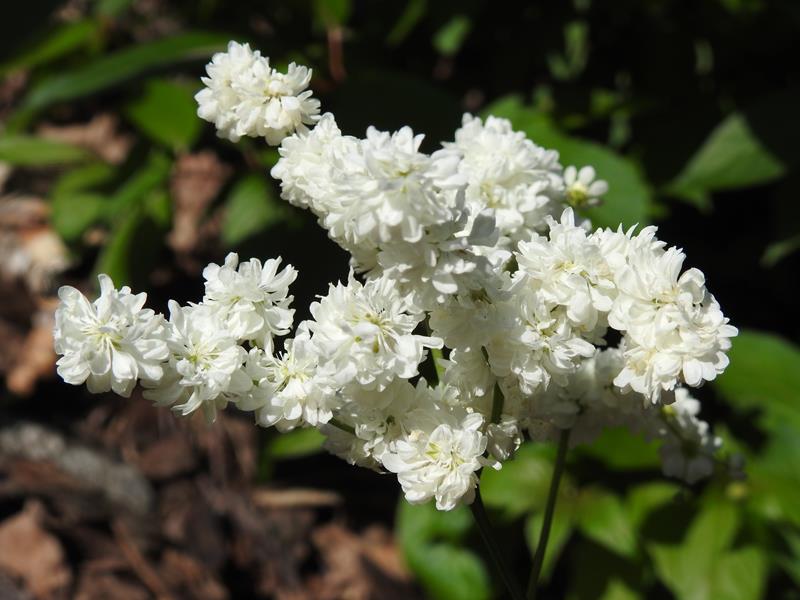 Bardzo ciekawa odmiana o paprotkowatych liściach i pełnych, białych kwiatach.