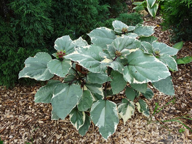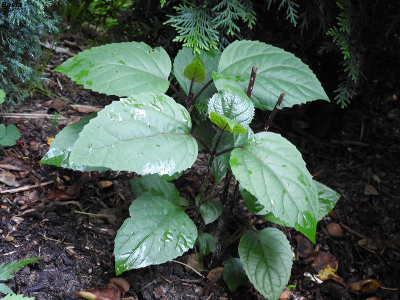 Liść: duży, sercowaty, do 20cm dł., bardzo dekoracyjny, niebieskozielony z białokremowym brzegiem