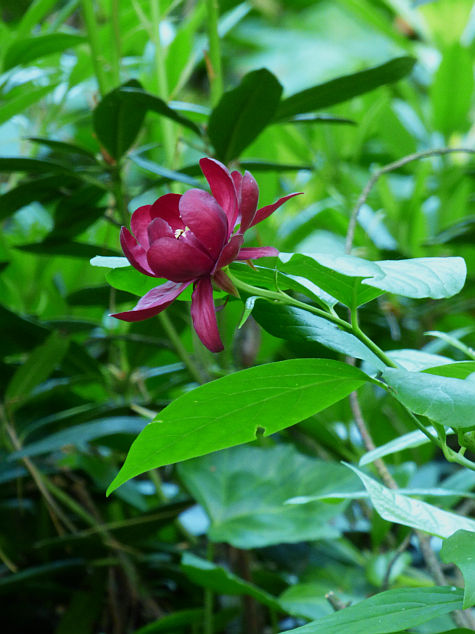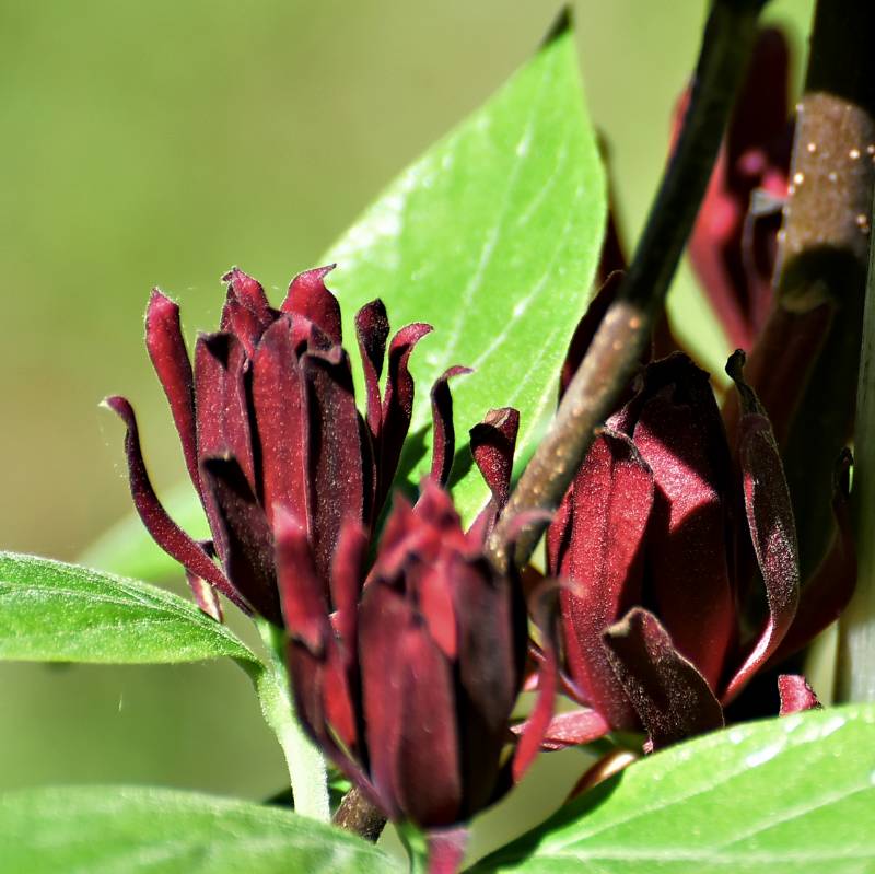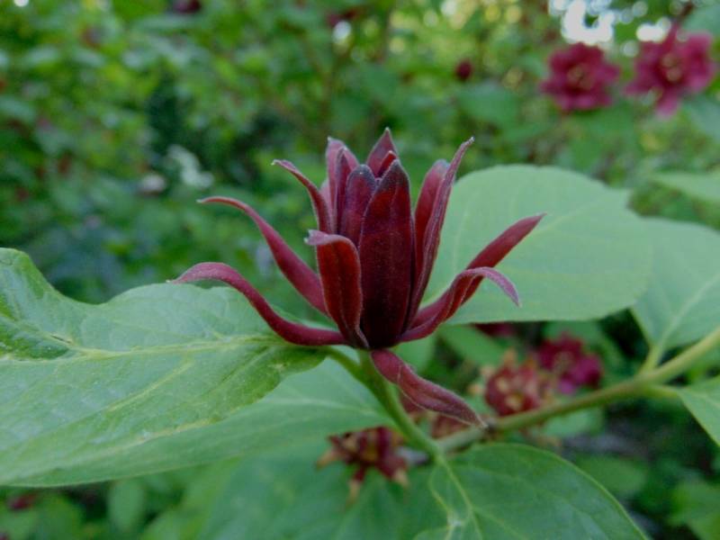 Calycanthus floridus). Ten interesujący, choć dość rzadko spotykany w ogrodach krzew ozdoby, posiada nie tylko ciekawe kwiaty i przebarwiające się jesienią na żółto liście, ale też zachwyca dość mocnym, charakterystycznym aromatem, przypominającym zapach jabłek i goździków.