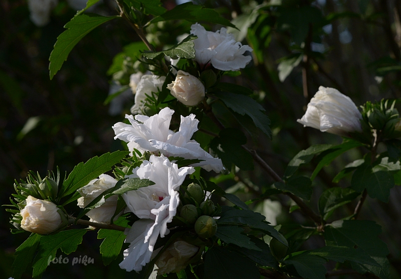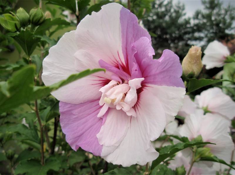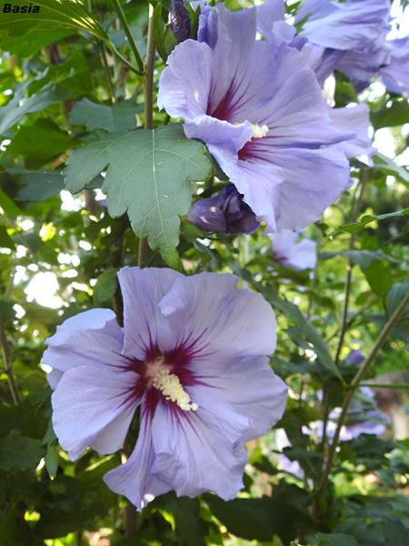 Kwiat: pojedynczy, półpełny, pełny, duży, podobny do kwiatów Malwy, na pędach tegorocznych