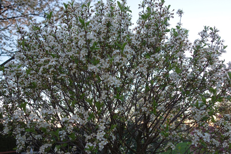 Liście drobne, ciemnozielone. Kwitnie kwiecień-maj. Kwiaty małe białe.