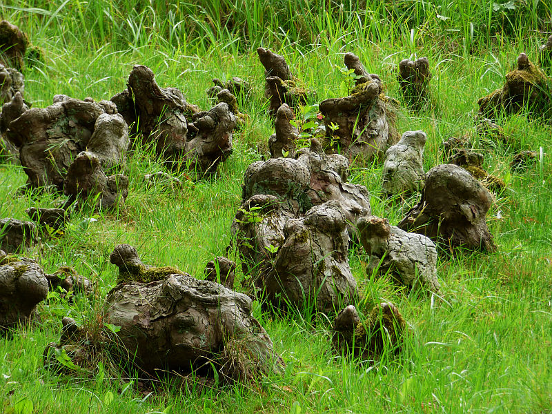 Zbliżenie na pneumatofory czyli korzenie oddechowe... wyrastają one pionowo nad powierzchnię gruntu z korzeni podziemnych i umożliwiają tymże dostęp powietrza (w bagnistej glebie panują warunki beztlenowe)