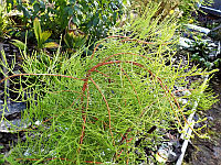 Igły: nitkowate, szmaragdowo zielone, jesienią przebarwiają się na rdzawo pomarańczowo.