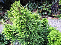 Karłowa, wolno rosnąca odmiana o zwartym, półkulistym pokroju.